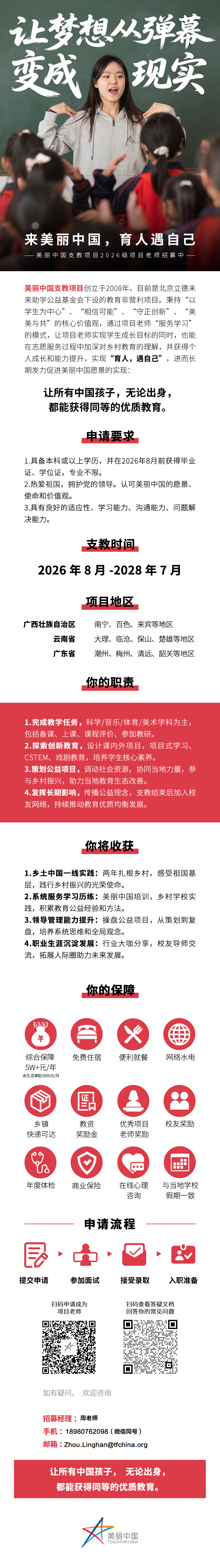 (美丽中国支教项目将在收到简历后3个工作日内,以邮件形式告知是否就进入面试)