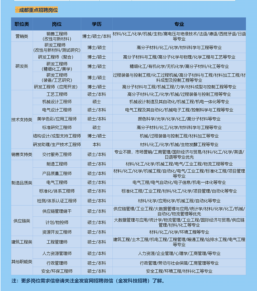 或关注金发官方招聘微信(金发科技招聘)了解。