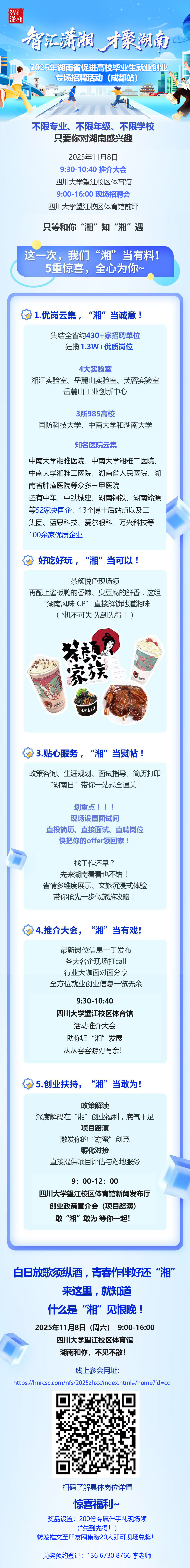 智汇潇湘 才聚湖南:2025年湖南省促进高校毕业生就业创业专场招聘活动(成都站)