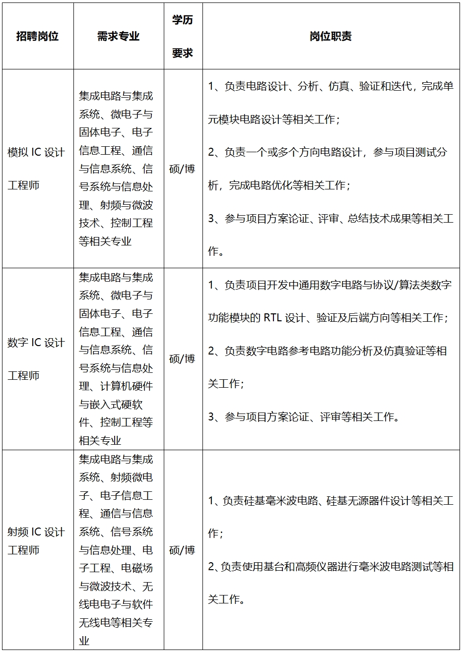 重庆吉芯科技有限公司2025校园招聘简章