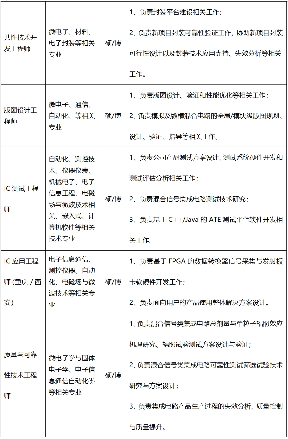 | 职位名称 | 类型 | 性质 | 最低学历 | 人数 | 薪资 | 详情 |