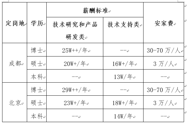2.超强福利:安家费、精装单身公寓(成都)/租房补贴、工作餐补贴、通讯补贴、节假日补贴、出差补贴、防暑降温费、烤火费等;