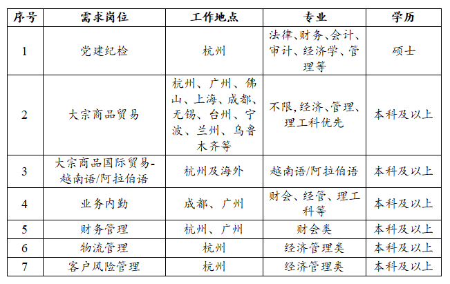 | 大宗商品贸易岗 | 市场营销|销售 | 全职 | 本科 | 10 | 12000-15000 | 点击进入 |
