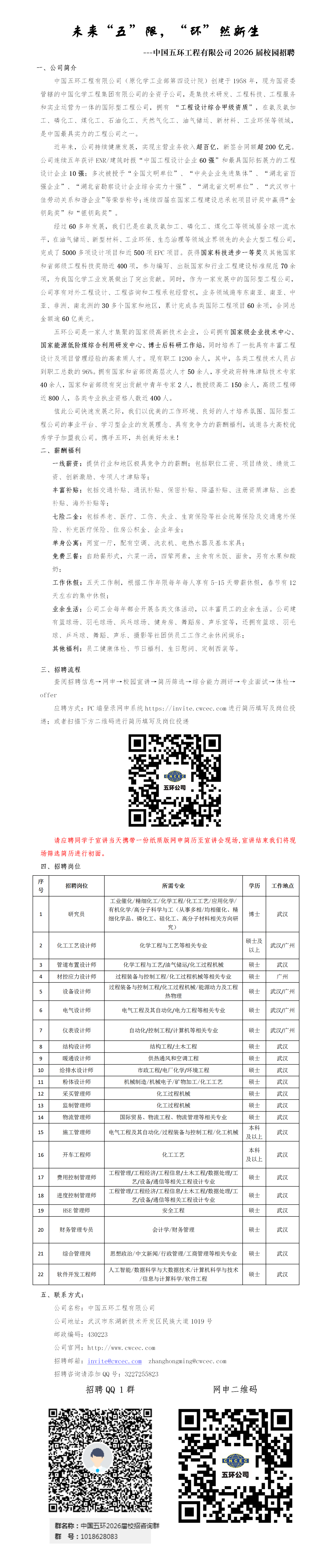 (央企校招)中国五环工程有限公司2026届校园招聘
