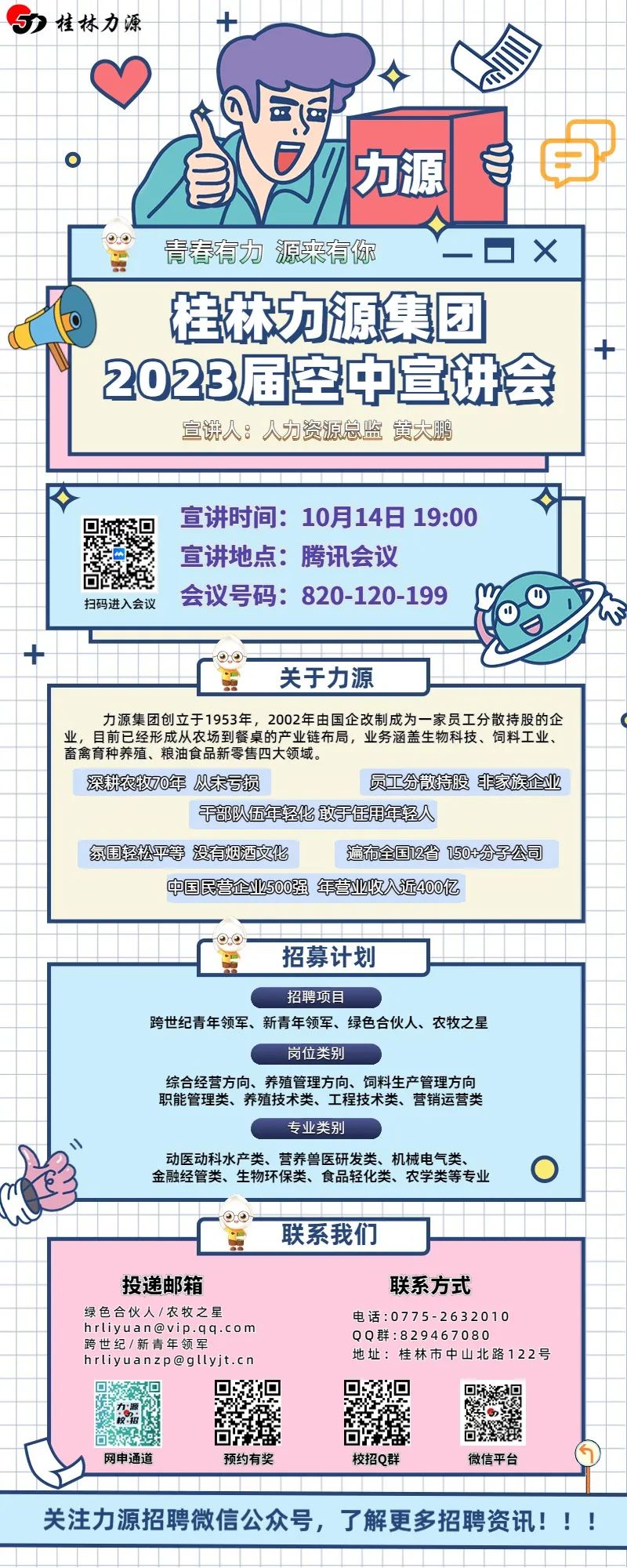 | 单位简介 | 【力源集团】创立于1953年,2002年由国企改制成为一家员工分散持股的企业,目前已经形成从农场到餐桌的产业链布局,业务涵盖生物科技,饲料工业,畜禽育种养殖、粮油食品新零售四大领域。致力于为养殖企业和客户提供可持续的饲料营养解决方案;致力于为终端消费者提供安全可信、健康美味的食品和彼此信任的消费体验;致力于成为让全体员工感受平等、快乐、成长、幸福、尊严的事业平台;致力于为所在地创造就业机会、带动农户致富、带来税收贡献;致力于推进乡村振兴、用产业健康发展推动乡村可持续发展。 【力源集团】目前在全国13个省份拥有180+家分子公司、14000+员工,年营业收入约450亿,荣获“农业产业化国家重点龙头企业”、“中国民营企业500强”、“广西企业100强”“广西民营企业九月人数TOP1”等荣誉。 【力源集团】全员分散持股,无任何股东持股超过1%,无家族持股,员工责任共担,发展共享。秉承“合作、创造、共赢”的经营理念,致力于成为一家快乐的、受人尊敬的、可持续生存和发展的百年老店。 未来3到5年,集团将稳健推进产业布局:1)实现饲料销量2000万吨;2)完善种、养、屠宰的产业链配套,完成500万头肉猪出栏相关的祖代核心场、父母代扩繁场、公猪站、公司+农户育肥场的建设发展,完成1.5亿羽黄鸡出栏的育种+养殖相关配套;3)城市供应链+新零售覆盖华南、华中、西南多省市。 | 企业文化