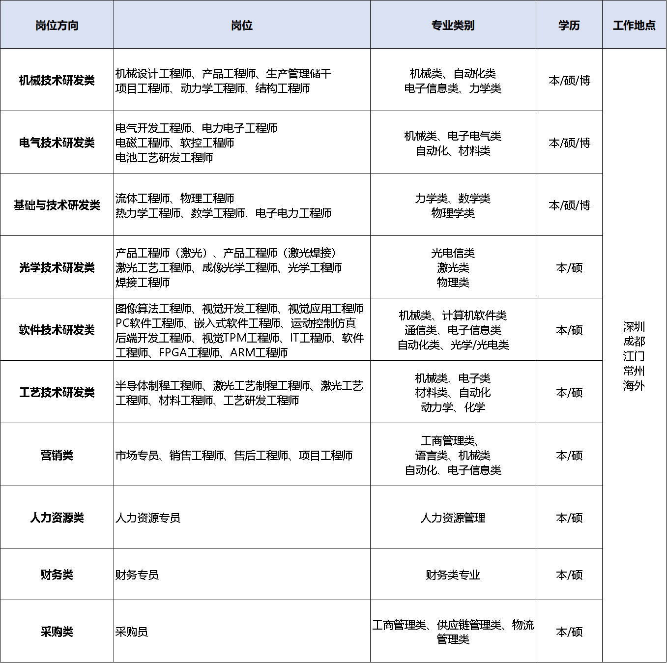 | 职位名称 | 类型 | 性质 | 最低学历 | 人数 | 薪资 | 详情 |