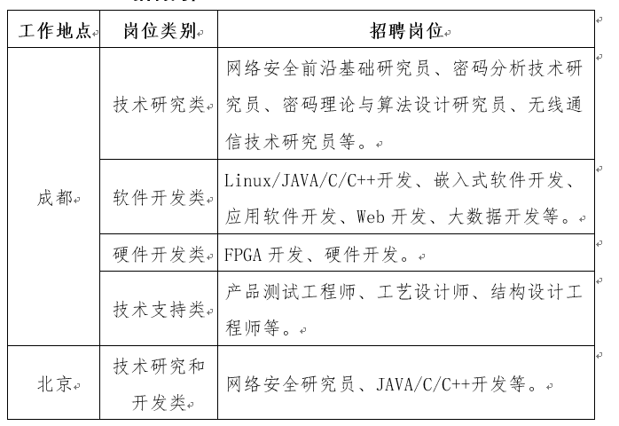 需求专业为:网络安全类、数学类、密码学类、计算机科学与技术类、信息与通信工程类、电子与信息类、控制科学与工程类、软件工程类、仪器科学与技术类、机械设计与制造类等。