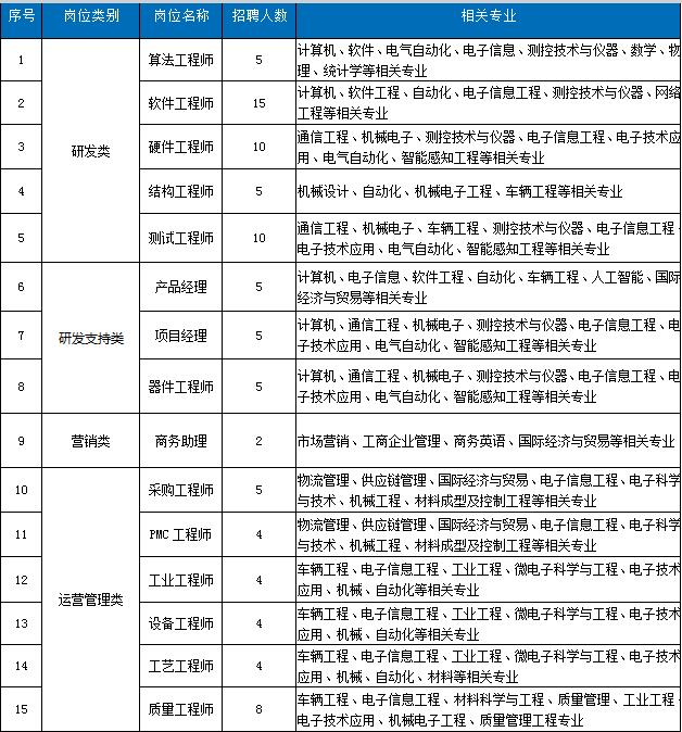 本次开放研发类、研发支持类、营销类、运营管理类岗位,详情如下: