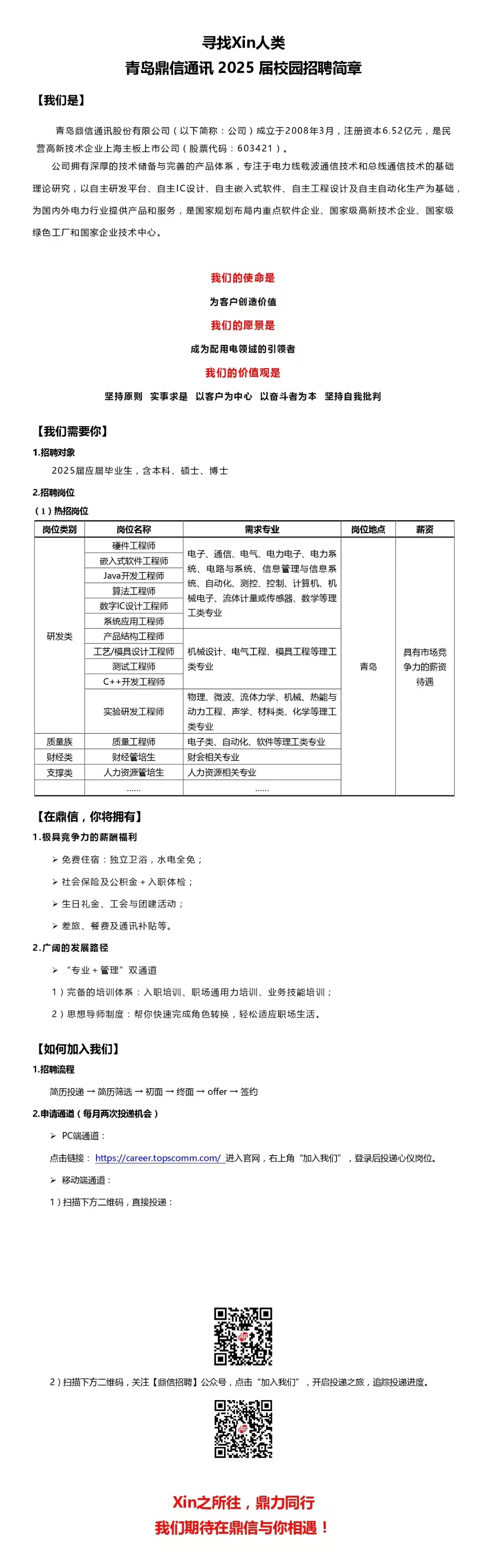 | 青岛鼎信通讯股份有限公司销服天团招募令——你的offer正在派送中~ | 线上 | 2025-04-09 | 点击查看 | |