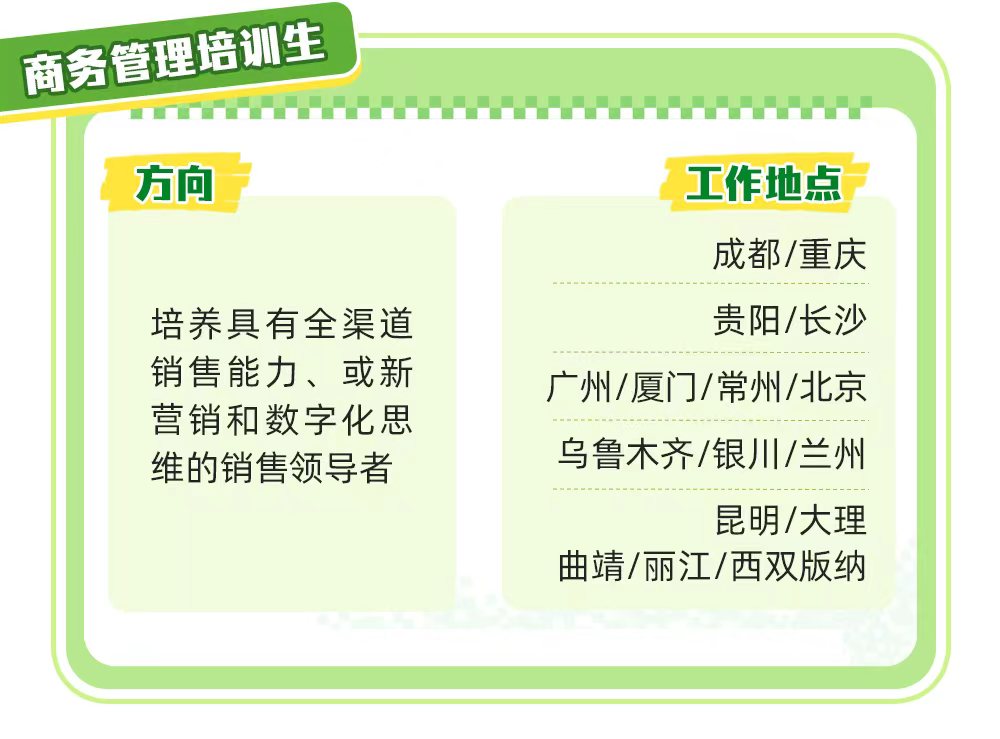 | 商务管培生 | 经理|管理培训生|其他管理层 | 全职 | 本科 | 10 | 16000-24000 |