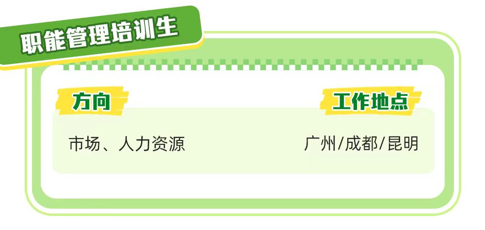 | 职位要求 | 大学本科及以上学历,专业不限 毕业时间在2024年7月1日-2026年7月31日之间,或2年内工作经验 愿意接受全国范围异地调动者优先考虑 具有抗压能力和学习能力,有责任与担当,以及良好的团队协作与沟通能力 热爱销售工作,规划销售管理为个人职业发展方向并为此努力 |