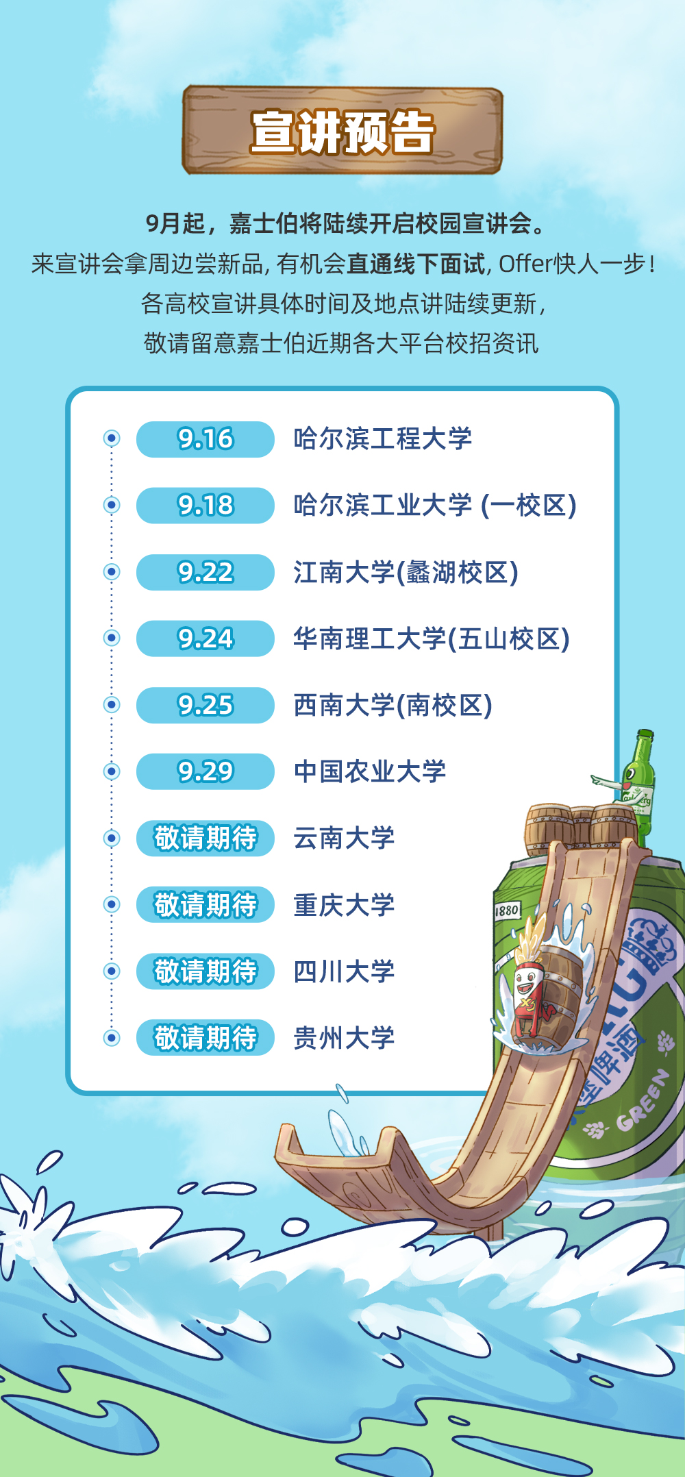 | 嘉士伯(中国)啤酒工贸有限公司广州分公司 | 线下 | 望江校区就业指导中心221室 | 2025-09-18 【15:20:00-17:20:00】 | 点击查看 |
