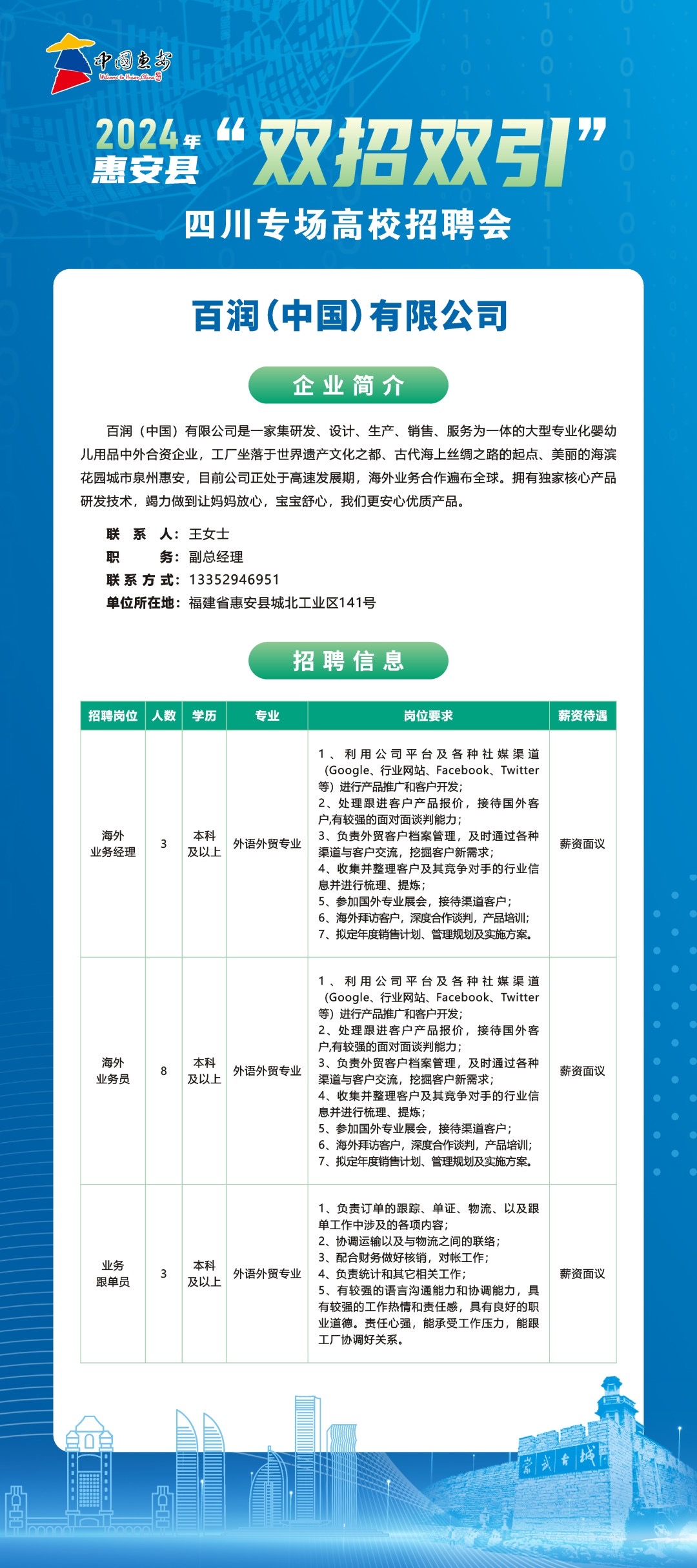 主办单位: 中国海峡人才市场惠安工作部