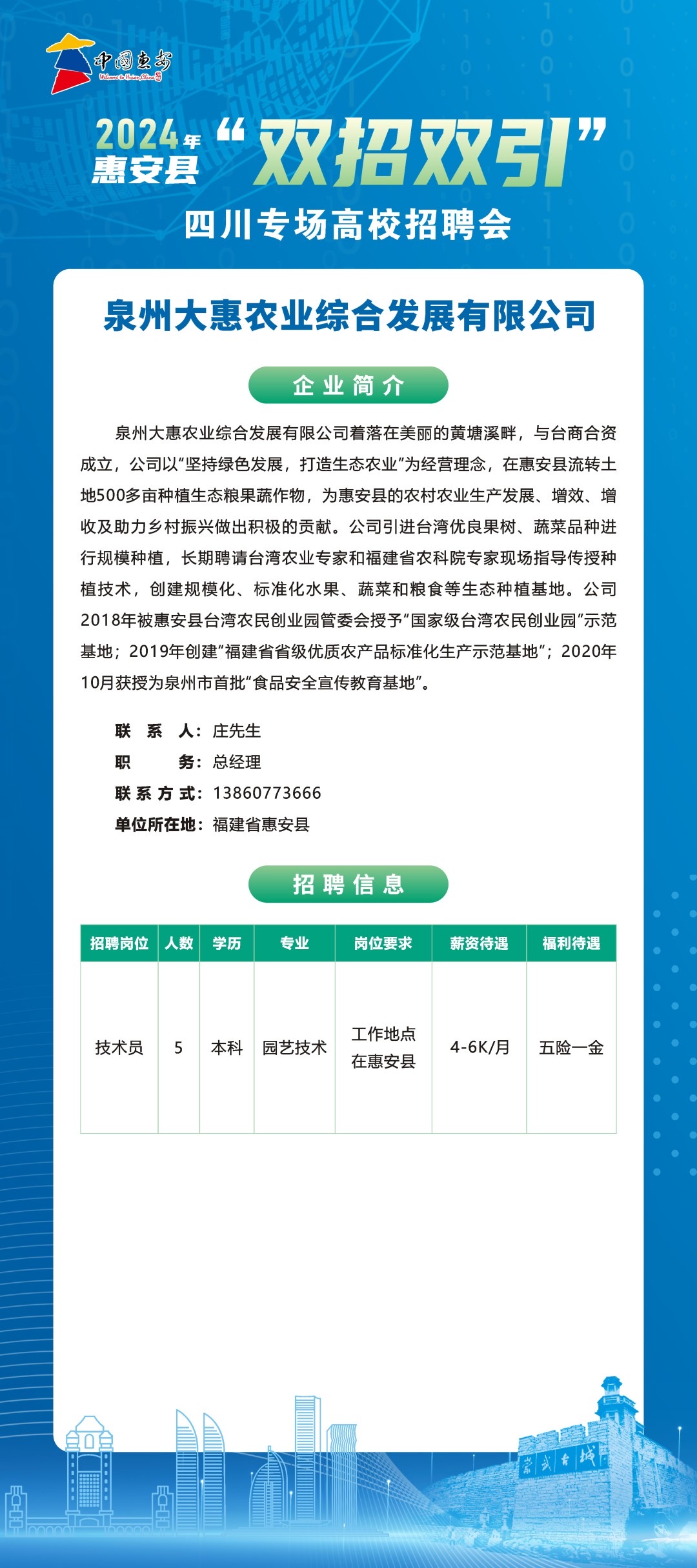 2024年福建省惠安县“双招双引”专场招聘会