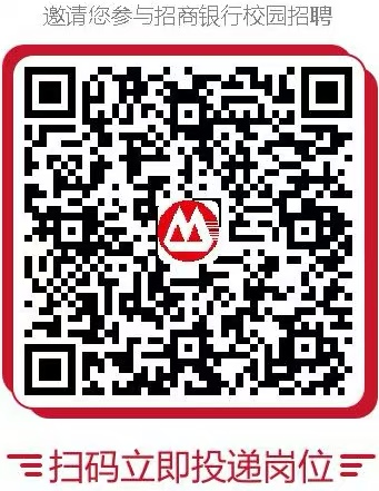2.方式二:扫描下方二维码,关注“招商银行招聘”微信公众平台,点击“招了”,选择“校园招聘”-“招聘机构”-“深圳分行”,申请深圳分行相关职位,投递简历;
